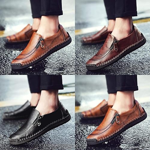Qiucdzi Men's Casual Penny Loafers Breathable Lace-up Driving Boat Shoes Handmade Flats Dress Shoes
