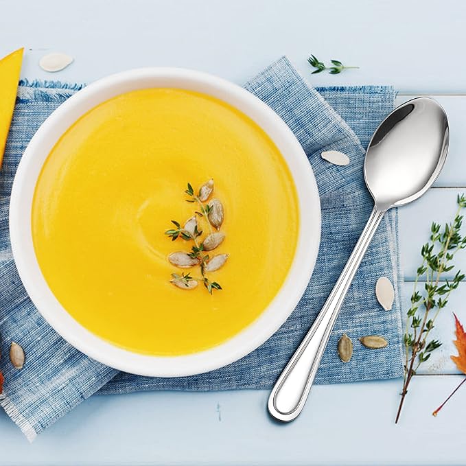 Dinner Spoons Set of 12, E-far 7.9 Inch Stainless Steel Soup Spoons Tablespoons for Home, Kitchen or Restaurant, Non-toxic & Mirror Polished, Easy to Clean & Dishwasher Safe
