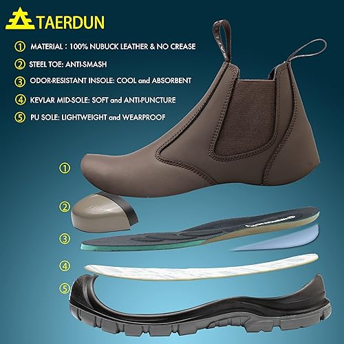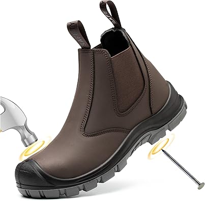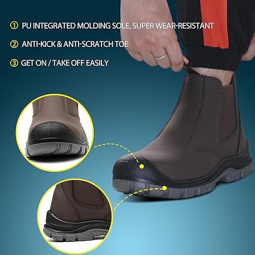 Steel Toe Work Boots for Men Slip-on Chelsea Boot, Men's Industrial & Construction Shoes, Waterproof, Lightweight, Comfortable, Non-slip Safety Shoes, Black, 10.5