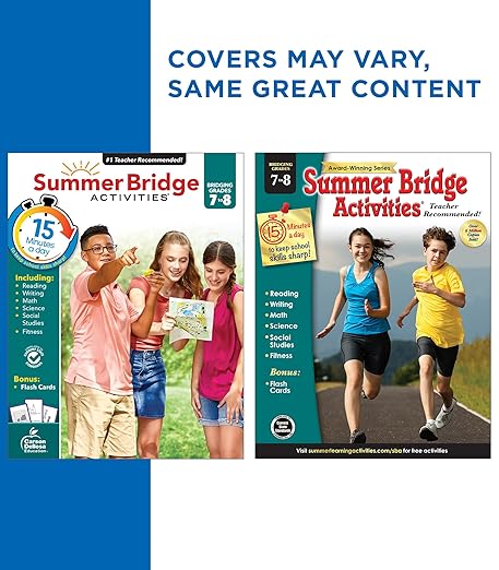 Summer Bridge Activities 7th Grade to 8th Grade Workbooks All Subjects, Math, Language Arts, Science, Social Studies, Fitness, Seventh & Eighth Grade With Flash Cards, eBooks & More (Volume 9)