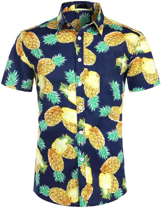 Summer Luxury Men's Shirt Lapel Short-Sleeved Pineapple Print Hawaiian Shirts Loose Casual Fashion Oversized Tops