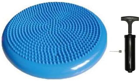 Enhance your workout and improve your balance with Therapists Choice Inflated Air-Filled Stability Balance Disc. Made with durable materials, this blue disc comes with a pump for easy inflation. Perfect for physical therapy, Pilates, and other exercises, it helps strengthen your core and improve posture.