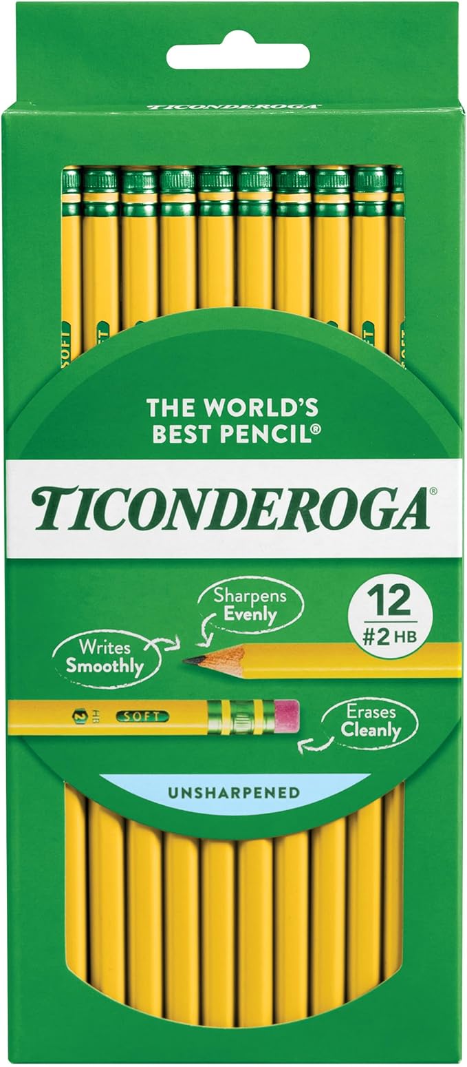Expertly crafted with a high-quality, HB soft lead and a classic yellow finish, Ticonderoga Wood-Cased Pencils provide a smooth and effortless writing experience. With 12 unsharpened pencils per pack, these versatile and durable pencils are perfect for all your writing needs.