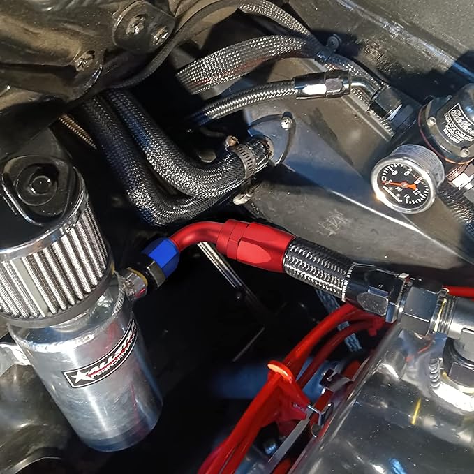 TOMALL 6AN 90 degree Hose End Fitting Swivel Aluminum 2PCS for Braided Fuel Oil Gas Line Hose End (RedBlue)
