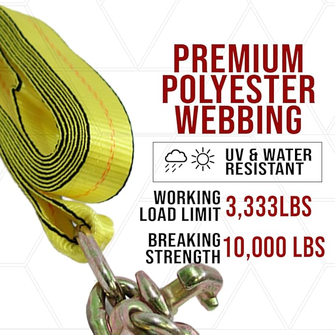 Tool Cluster Hook Strap 2 x 10 Towing Recovery Winch Strap G70 Hooks, J Hook, T Hook, and R Hook 10,000lbs (2 Pack)