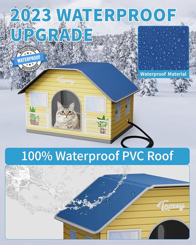 Toozey Large Outdoor Heated Cat House, Weatherproof Outdoor Cat House for Winter with Pet Heating Pad, Safe Feral Outside Pet House, Suitable for Several Cats or Small Dogs, Warm Heated Cat Shelter