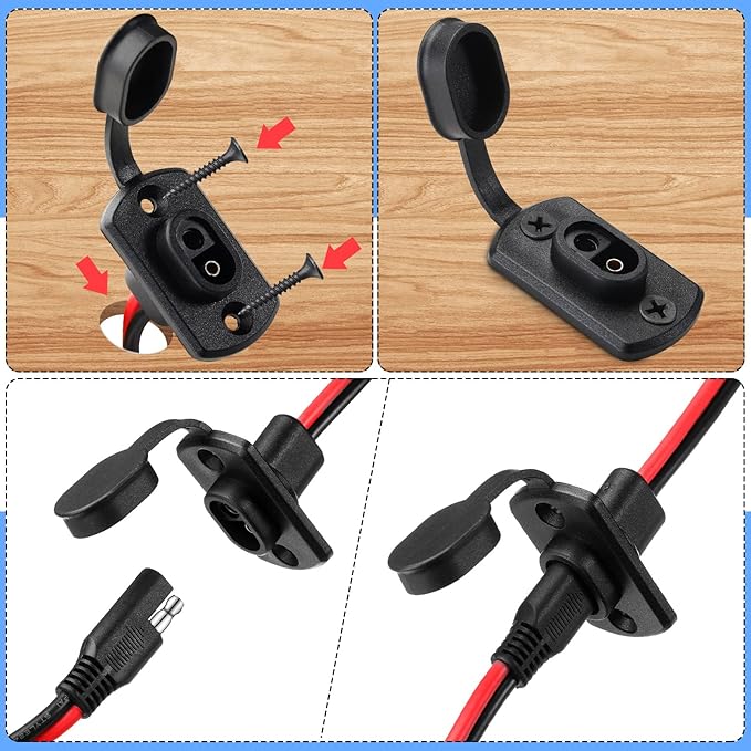 Safe and Reliable to Use: these solar battery connectors are made of quality copper wire and compatible with most SAE socket ports, creating a weather resistant solar panel recessed connector that is easy to install and secure