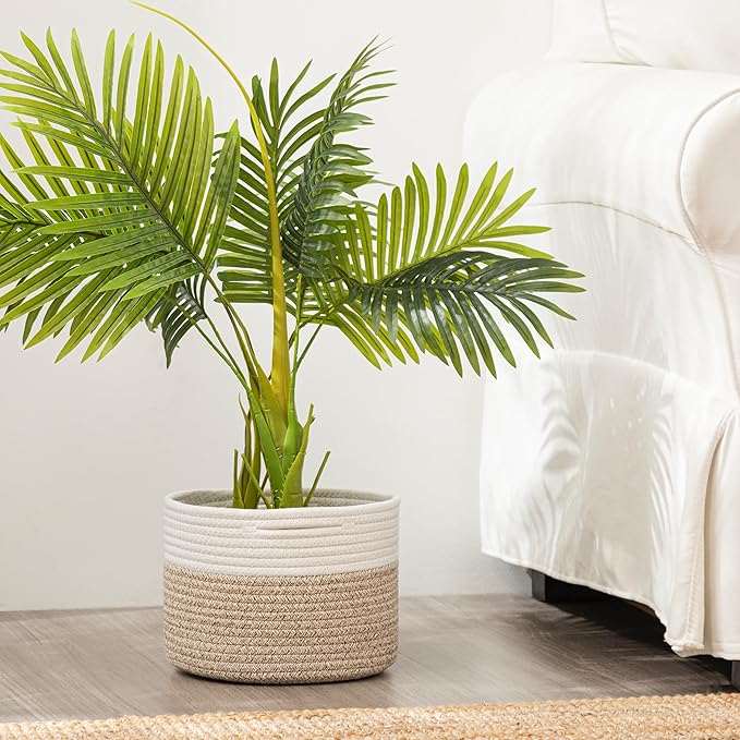 UBBCARE 2 Pack Small Basket for Organizing, Round Woven Basket With Handles, Small Storage Basket for decor, Beige Brown Cotton Rope Basket (9.5" x 9.5" x 7.1")