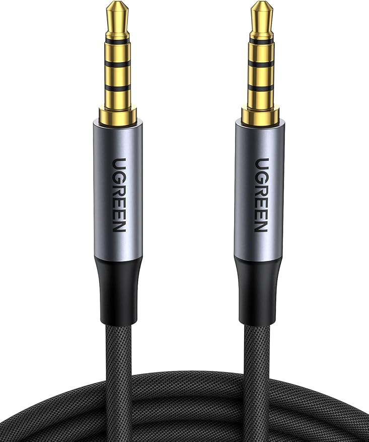 UGREEN 3.5mm Audio Cable Braided 4-Pole Hi-Fi Stereo TRRS Jack Shielded Male to Male AUX Cord Compatible with iPad, Samsung Phones, Tablets, Car Home Stereos, Headphones, Speaker, 3FT