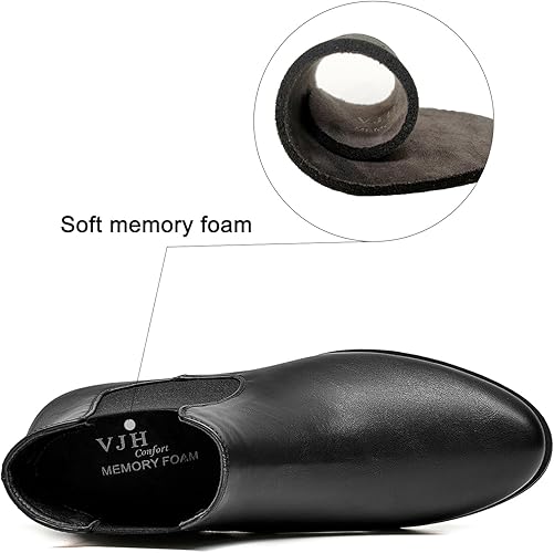 VJH confort Women's Slip on Ankle Boot, Western Almond Round Toe Low Heel Elastic Chelsea Bootie