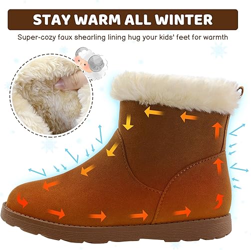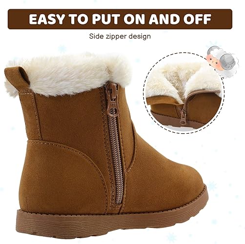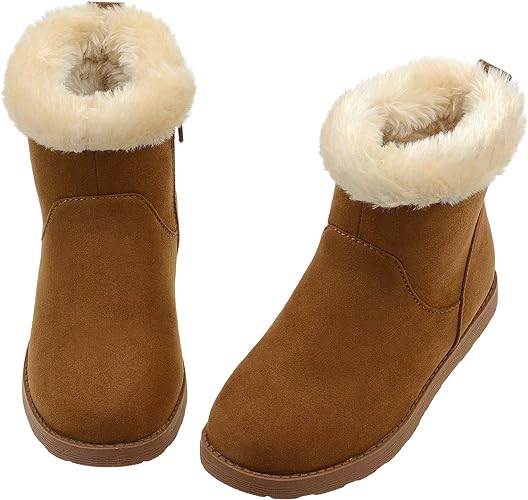 Vonair Girls Fuzzy Warm Winter Short Boots with Furry Faux Fur Lining Bootie Shoes for Toddler Little Big Kids Girls