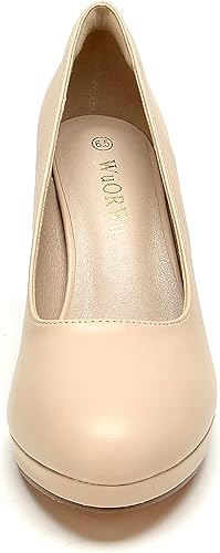 WuORWu Women's Round Toe Low Platform High Heel Pumps