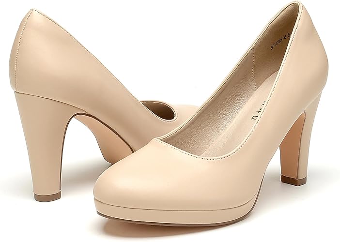 Get ready to elevate your style with WuORWu Women's Round Toe Low Platform High Heel Pumps. Featuring a sleek round toe design and a low platform for added comfort, these pumps will give you a stylish boost while providing stability. Perfect for any occasion, these pumps will be your go-to choice for a chic and comfortable look.